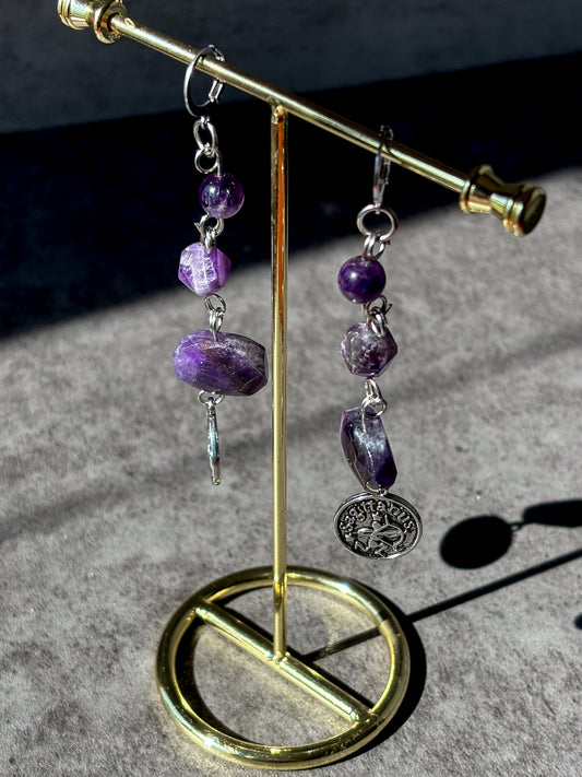 Sagittarius Astrology Silver Amethyst Crystal Earrings