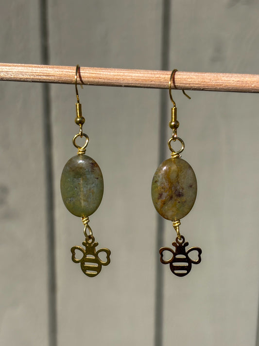 Green Moss Agate Snake Crystal EarringsRegular price $12.00 USDRegular priceUnit price / per-