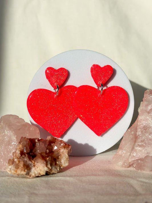 Sparkly Bright Red Stacked Heart Clay Dangle Stud EarringsRegular price $14.00 USDRegular priceUnit price / per-