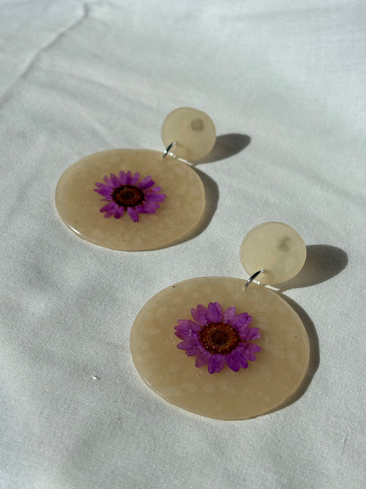 Purple Pressed Daisy Flower Transparent Stacked Circle Polymer Clay Stud EarringsRegular price $20.00 USDRegular priceUnit price / per