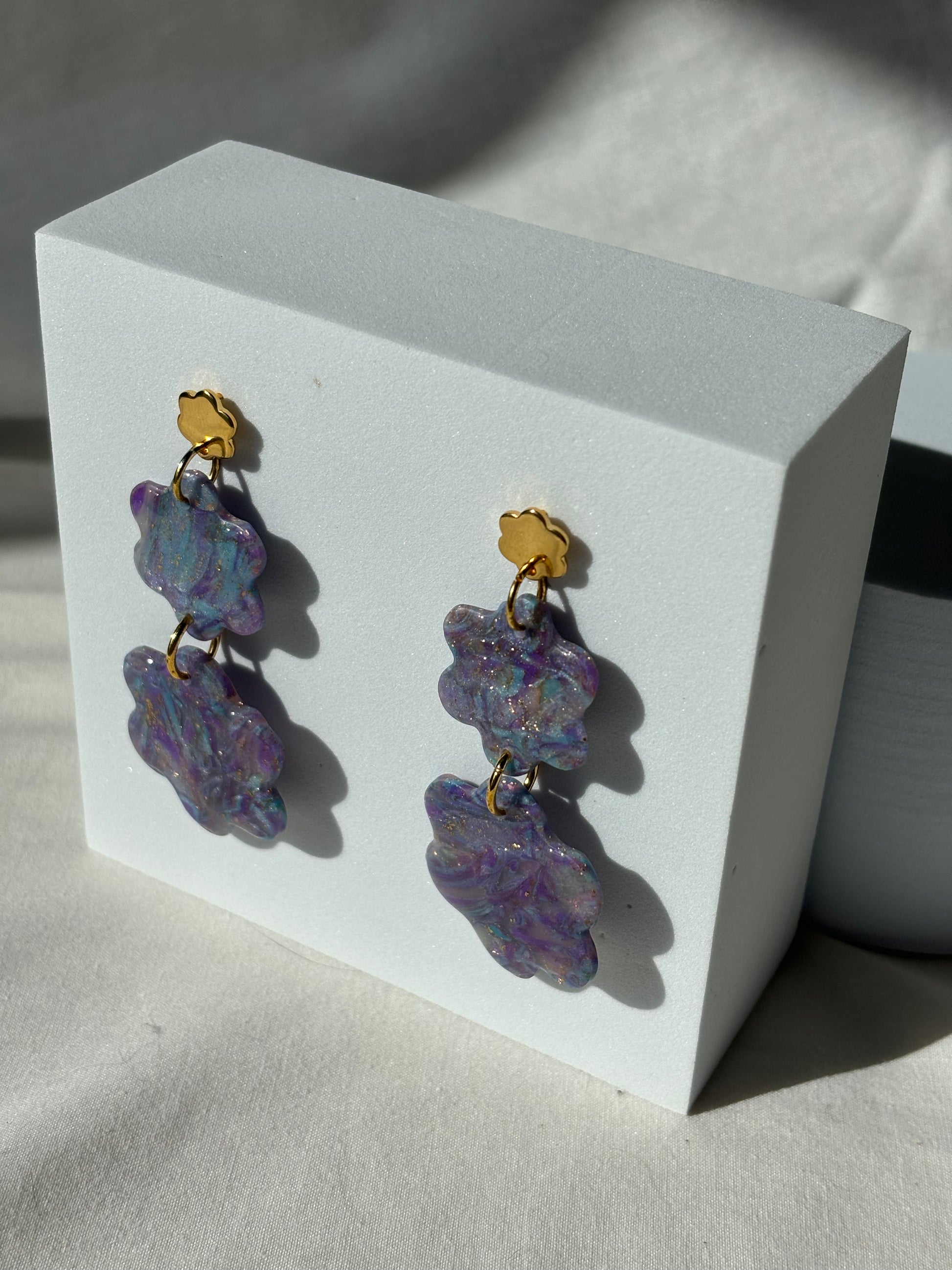 Blue Purple Swirl Transparent Colorful Polymer Clay Stud Earrings