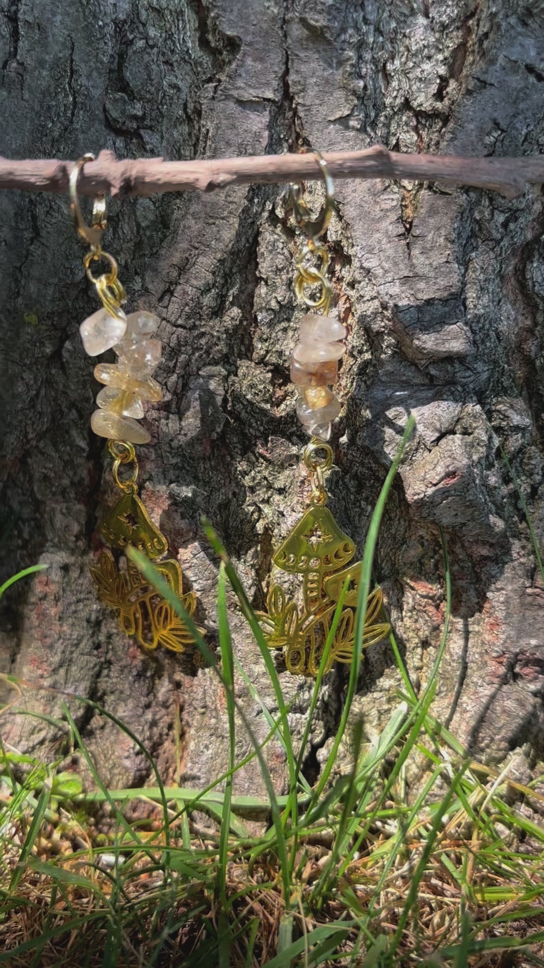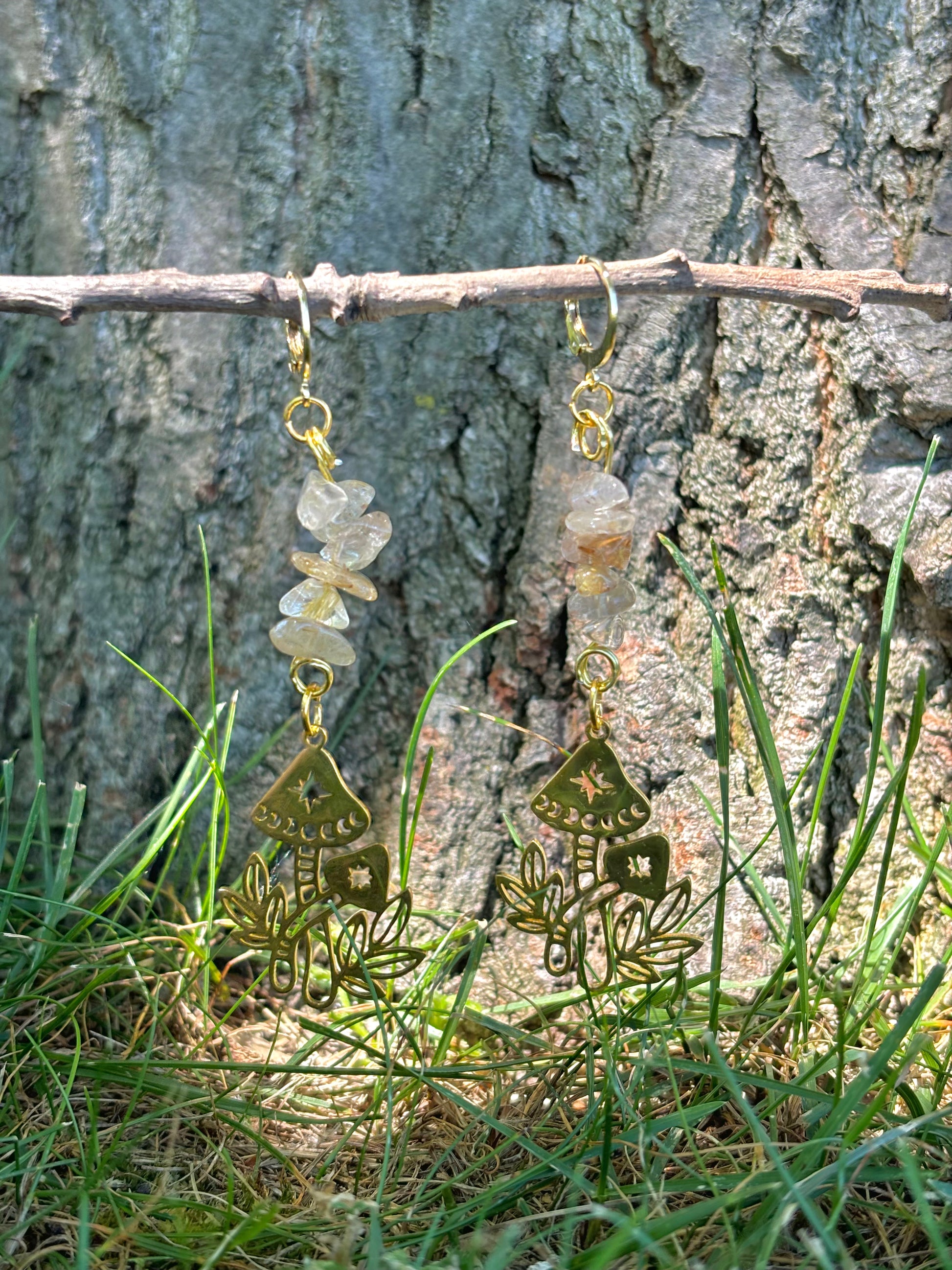 Citrine Crystal Mushroom Charm Dangle Earrings