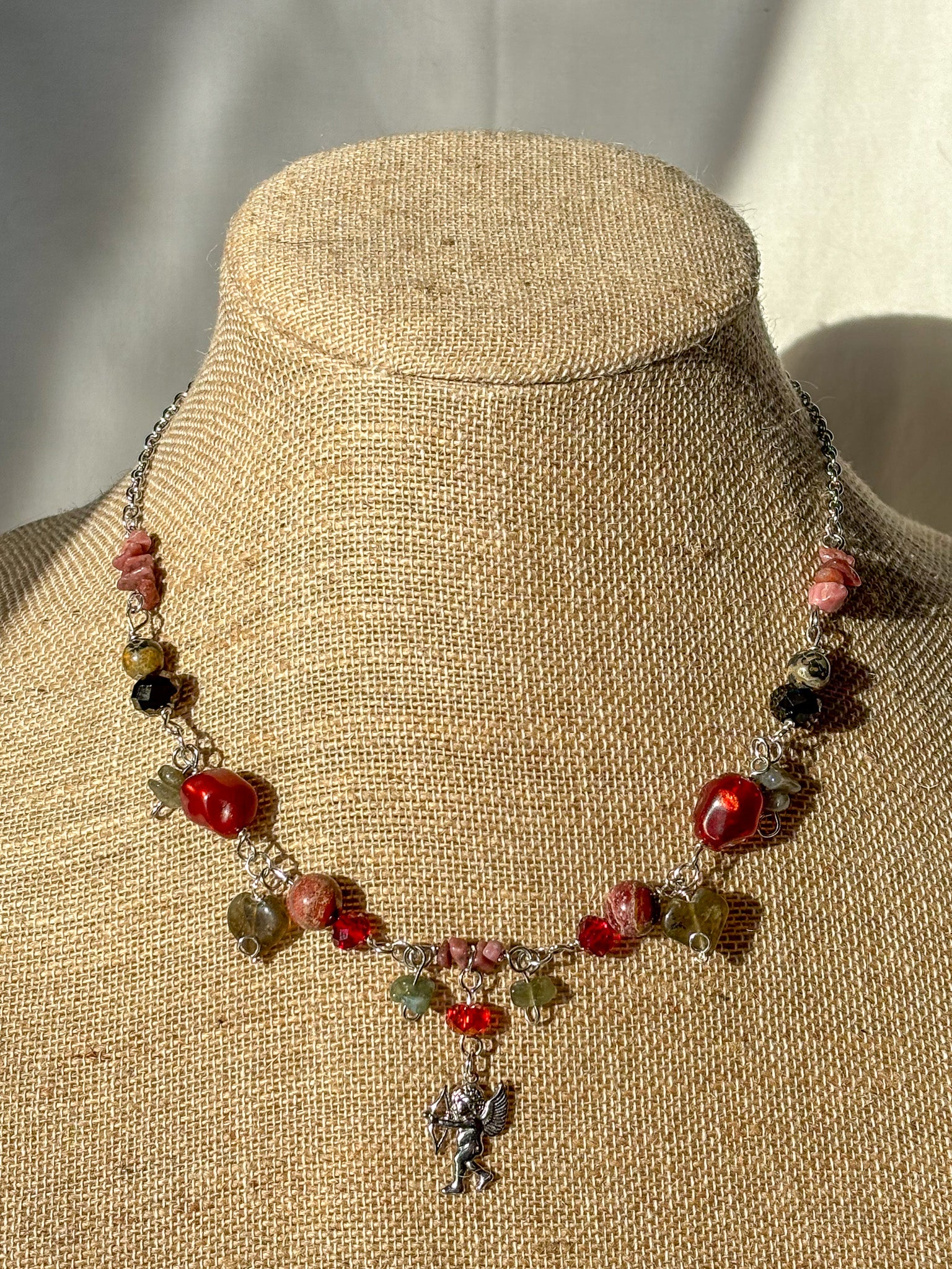 Cupid Cherub Red Crystal Stone Beaded Necklace