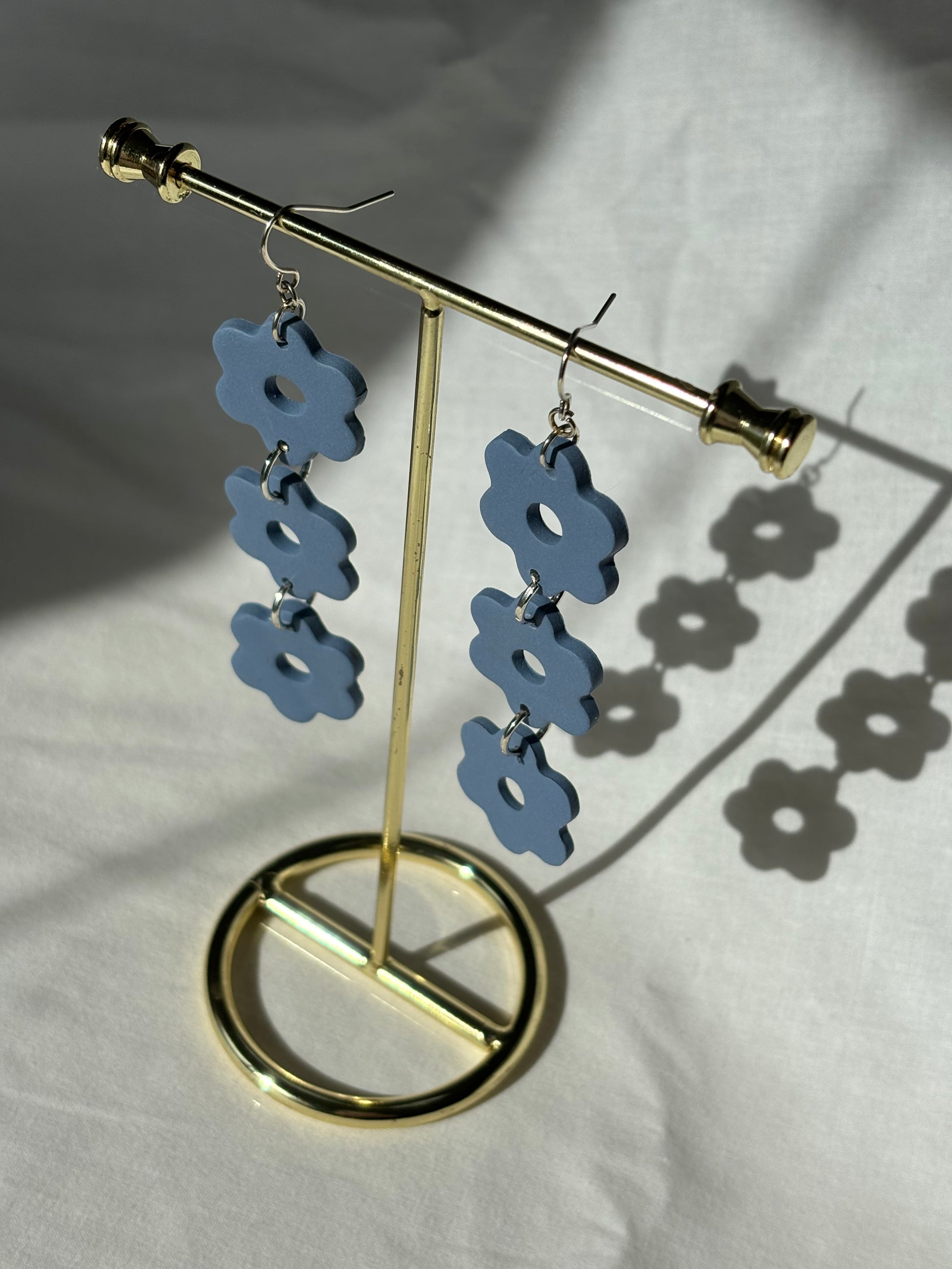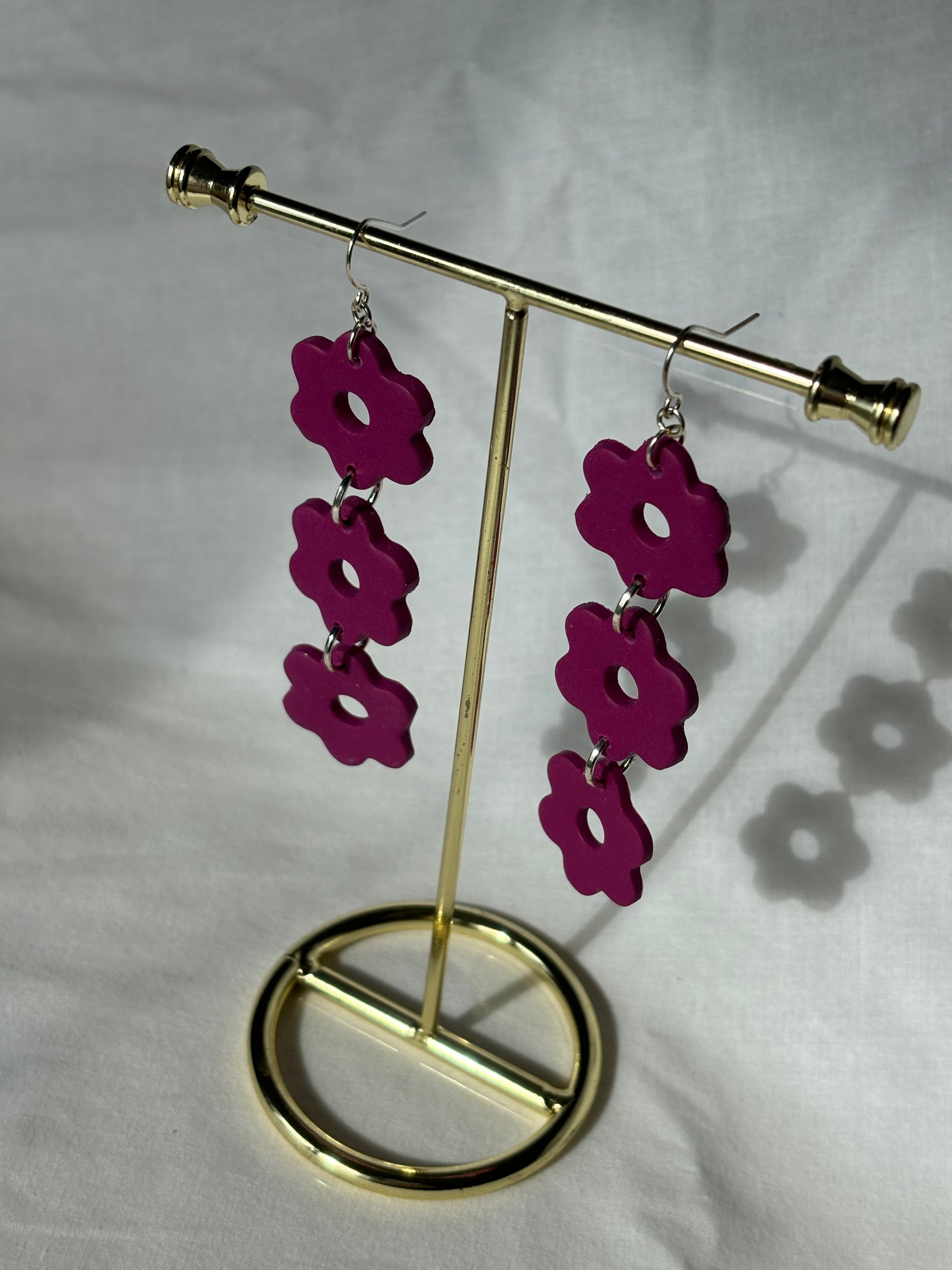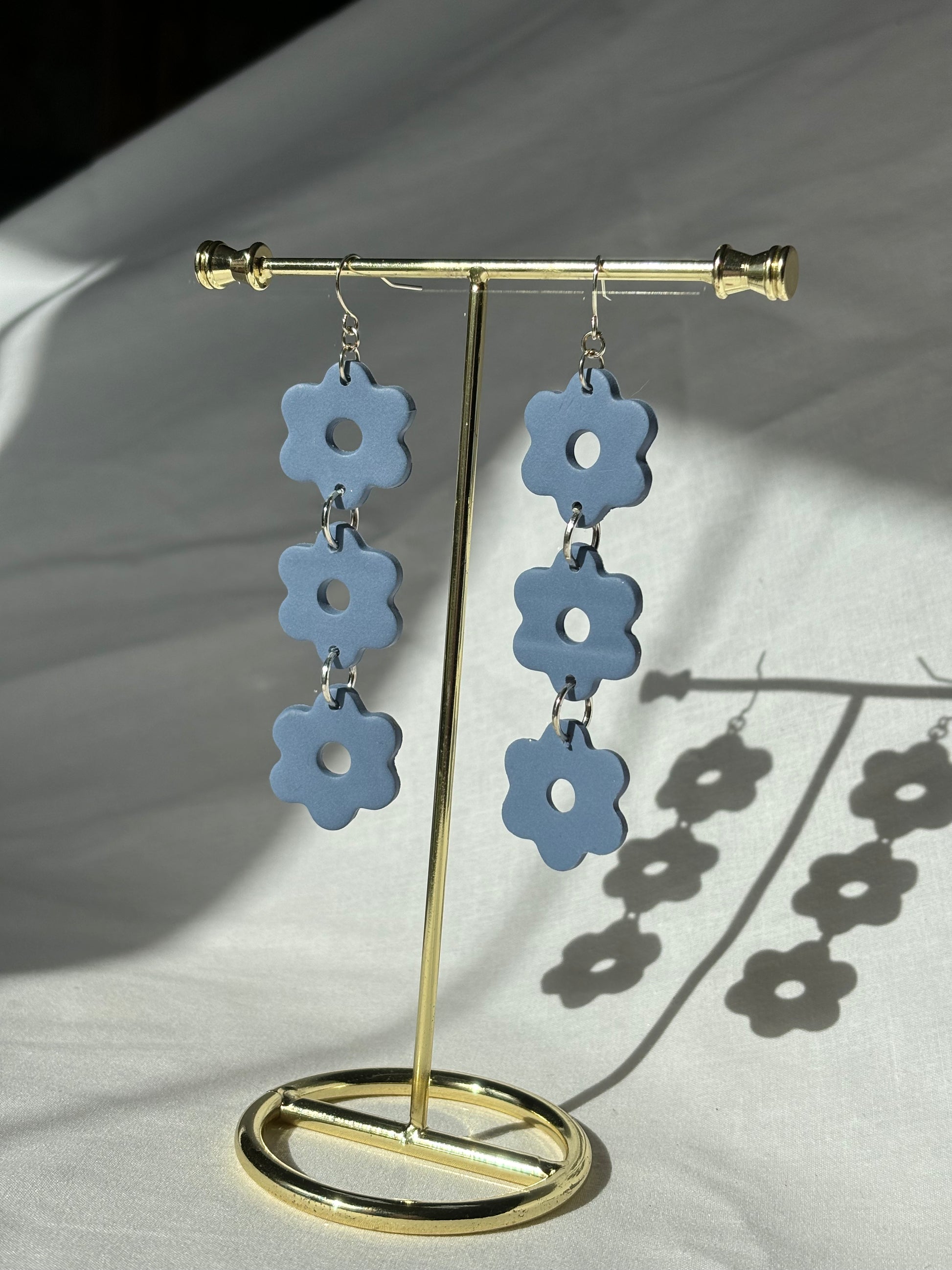 Flowers Stacked Tiered Matte Colorful Dangle Polymer Clay Earrings