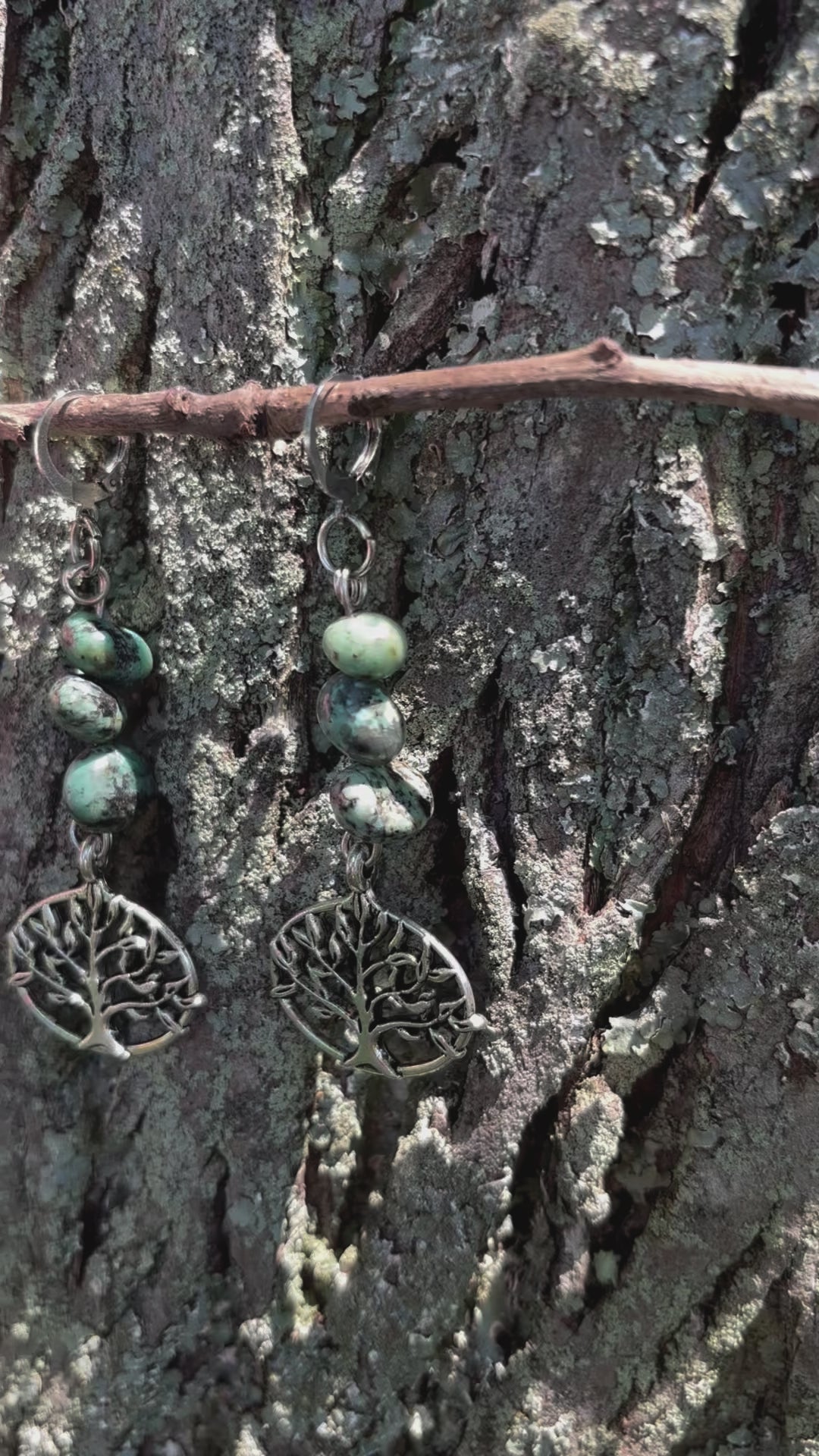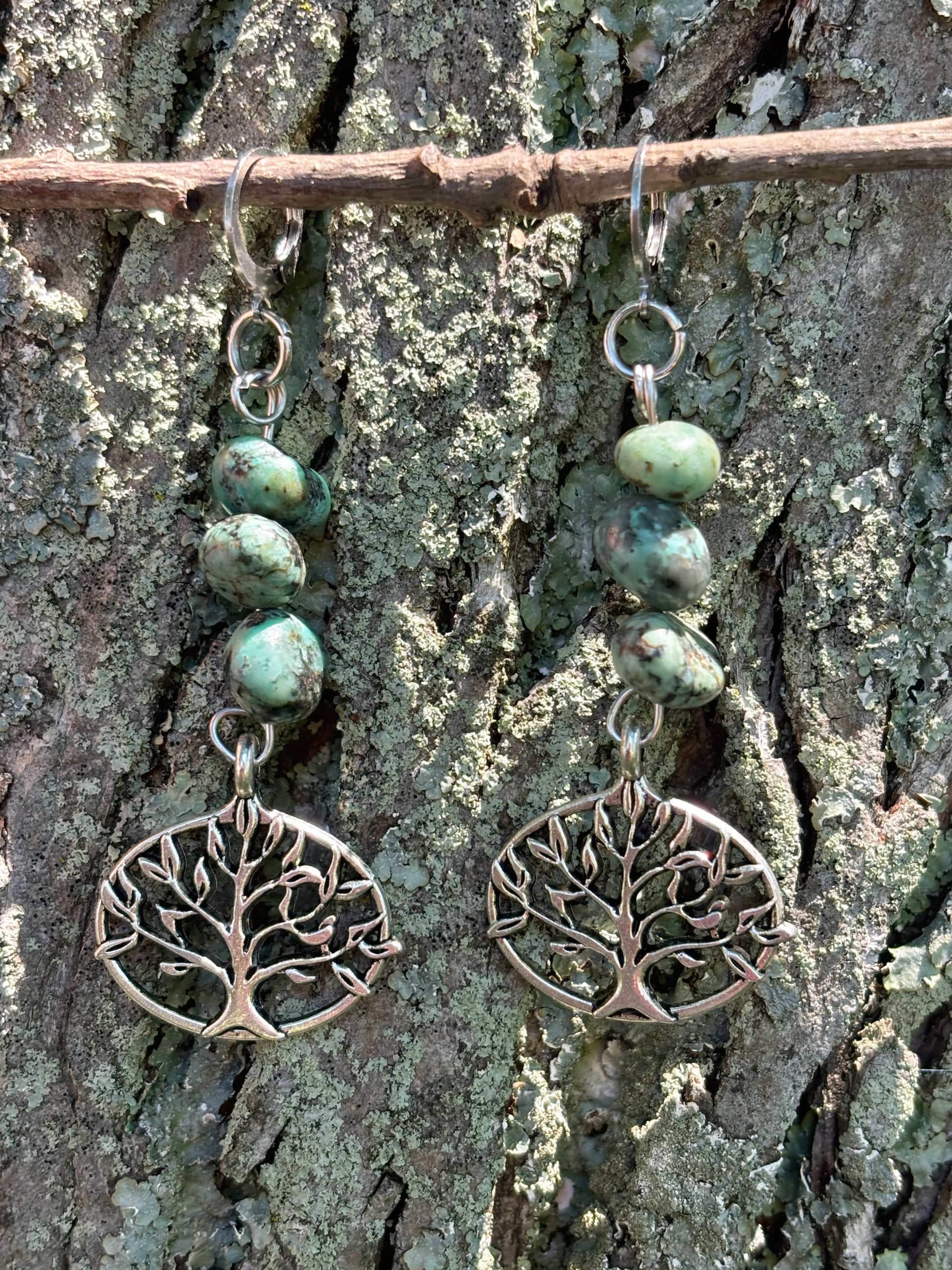 Green Turquoise Crystal Tree of Life Charm Dangle Earrings
