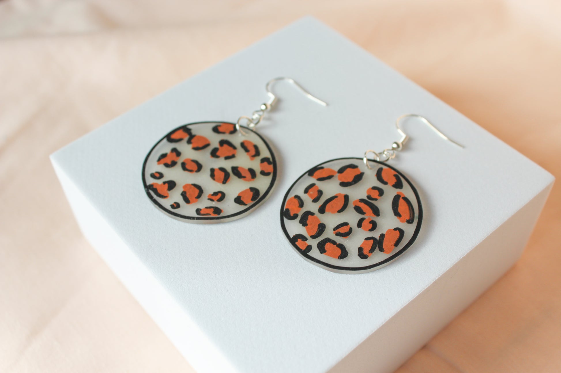 Hand Drawn Cheetah Print Shrink Plastic Brown Black Circle Earrings