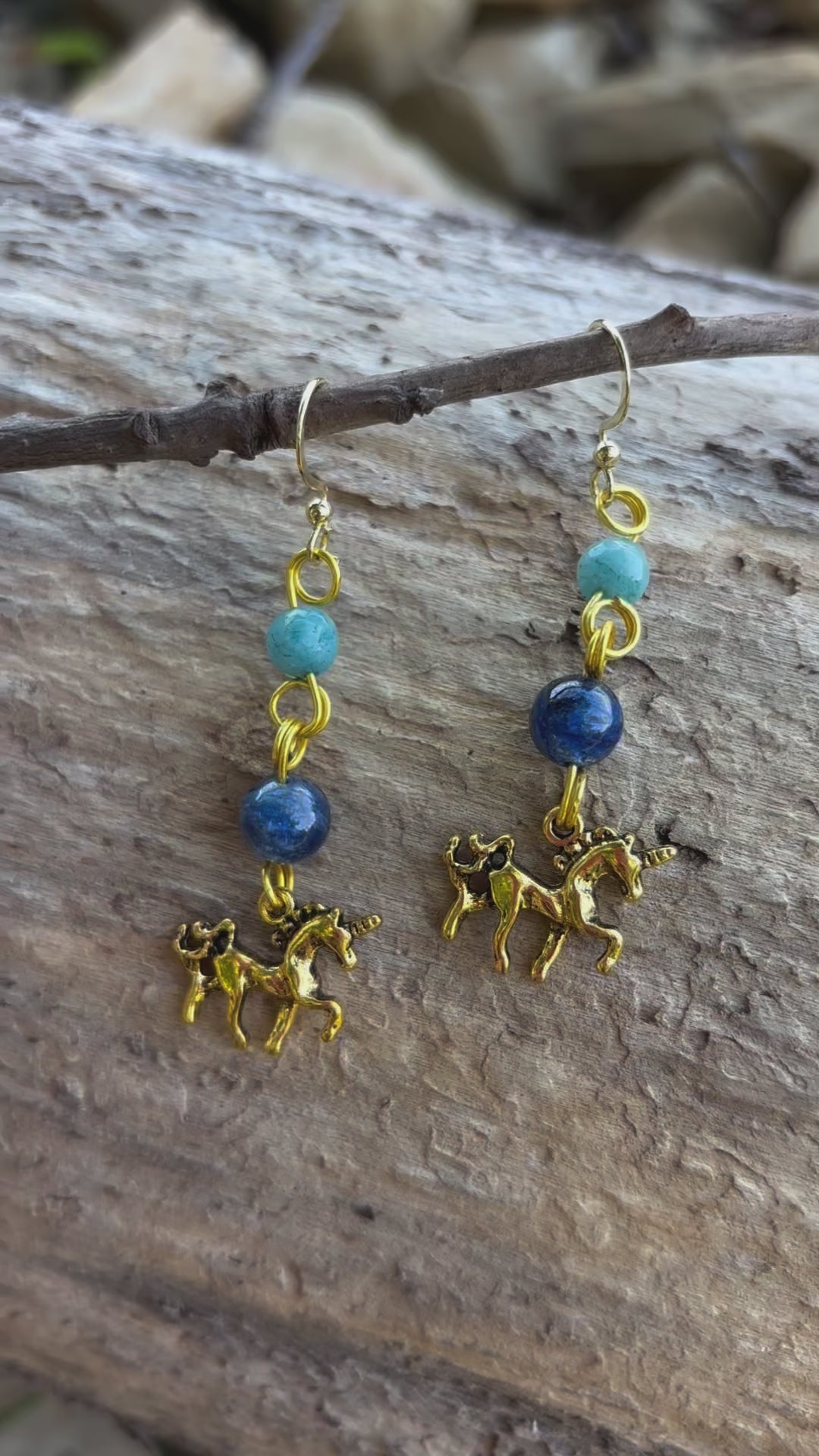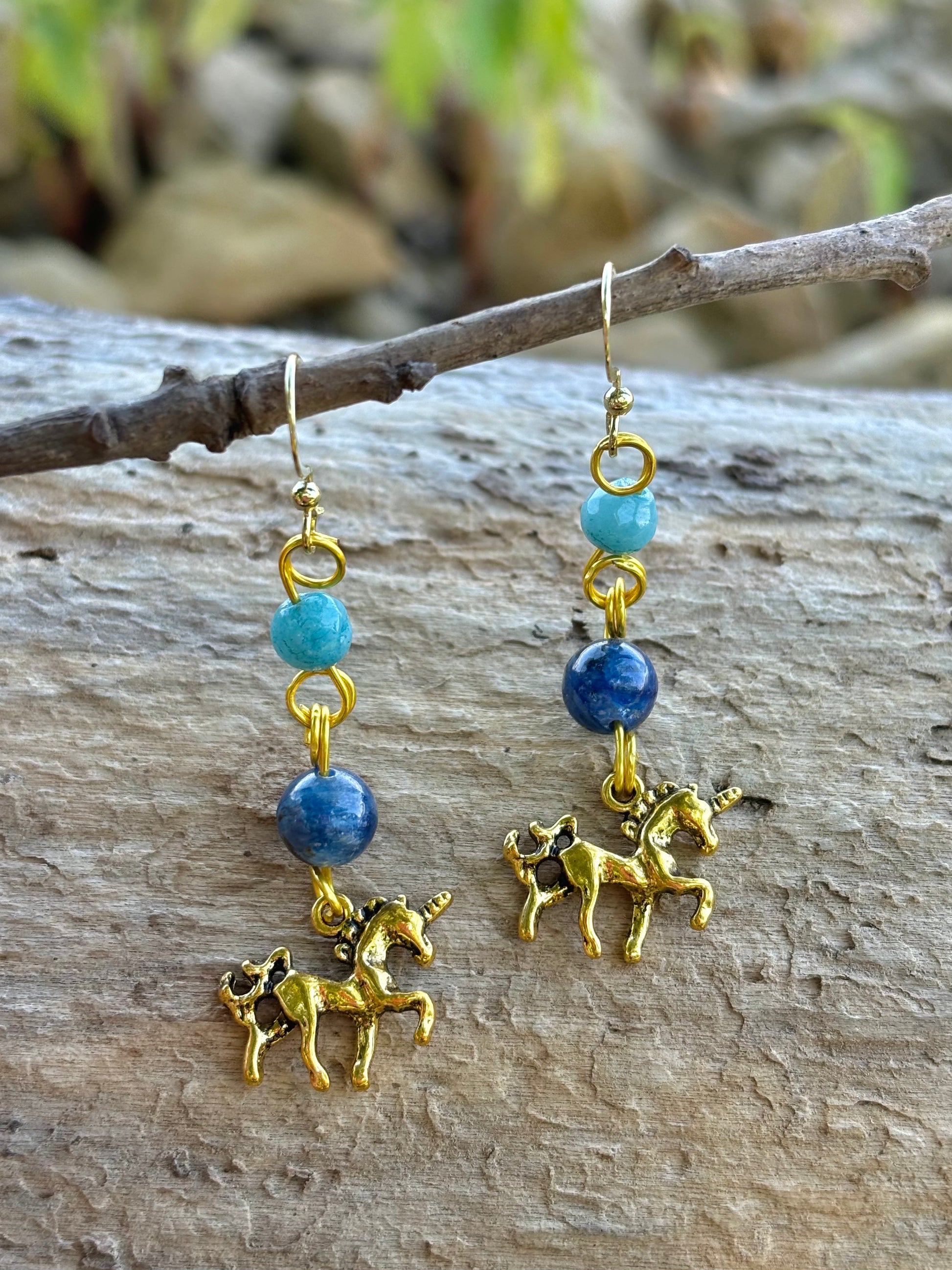 Kyanite Jade Crystal Gold Unicorn Dangle Earrings