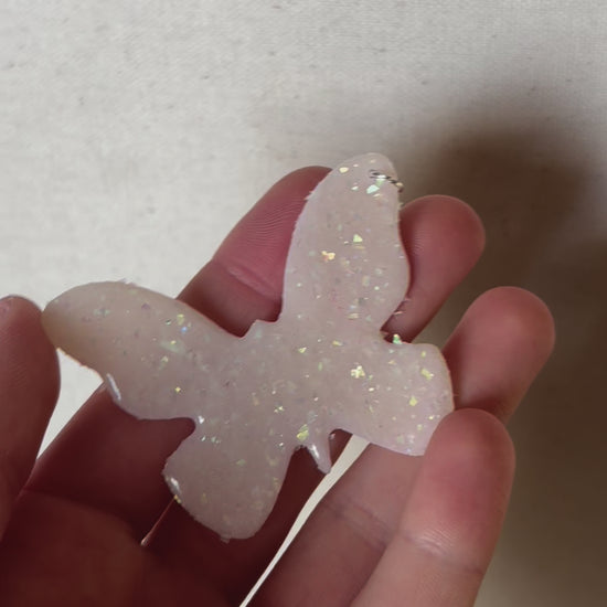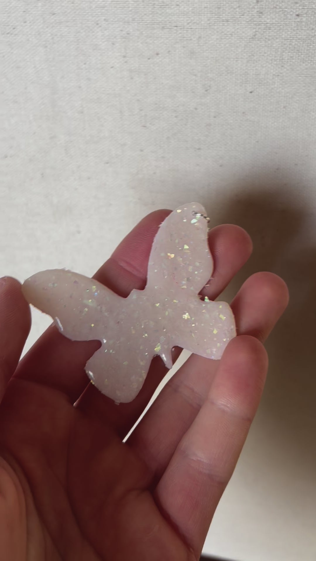 Opal Sparkle Transparent Off-White Dangle Stud Butterfly Clay Earrings