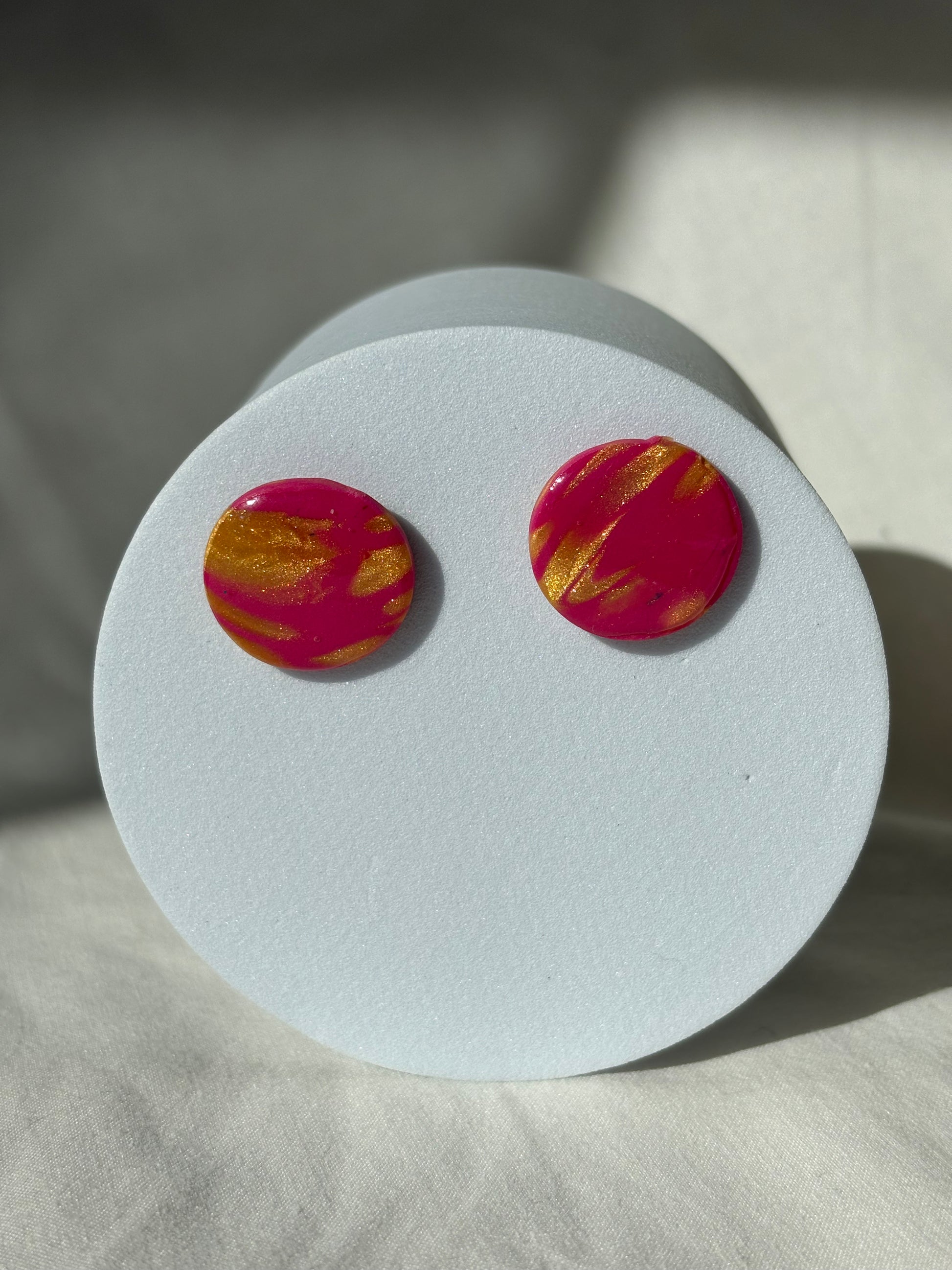 Pink Gold Swirl Shimmer Polymer Clay Studs
