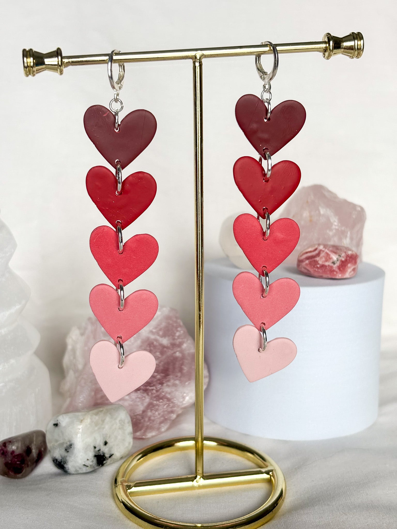 Pink Red Ombre Color Stacked Color Dangle Clay Earrings