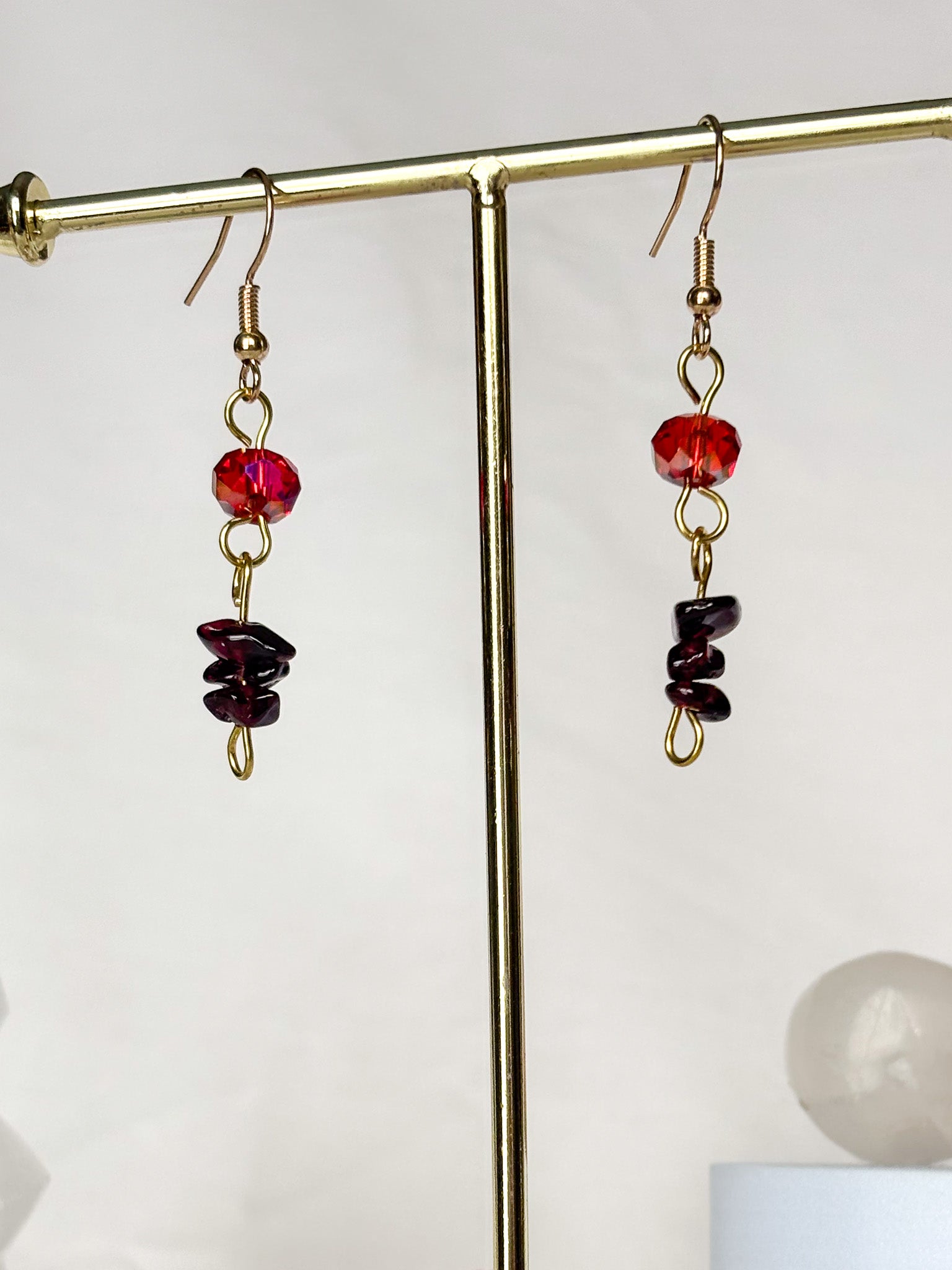 Red Garnet Dangle Beaded Sparkle Earrings
