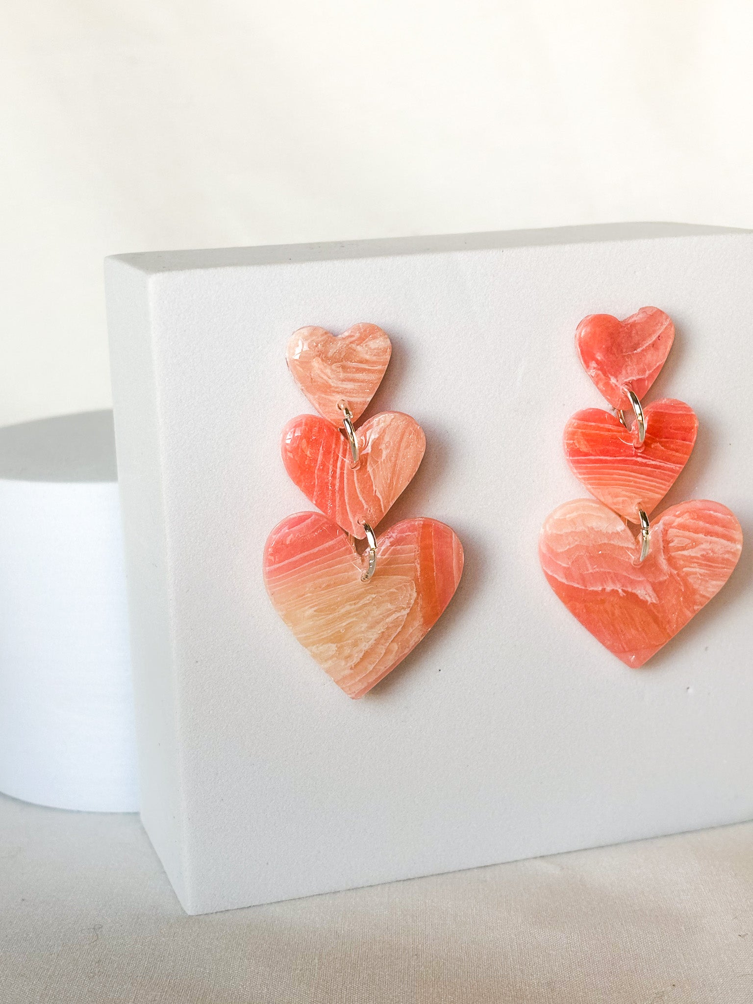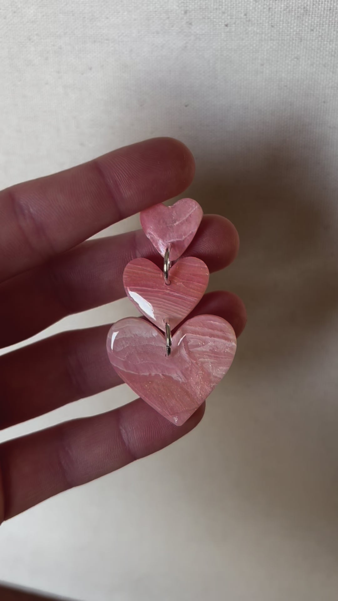 Stacked Swirled Transparent Pink Clay Dangle Hearts Earrings