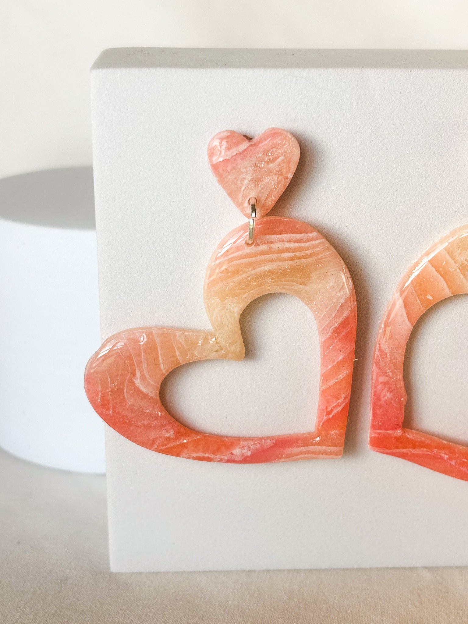 Stacked Transparent Pink Swirl Clay Stud Dangle Earrings