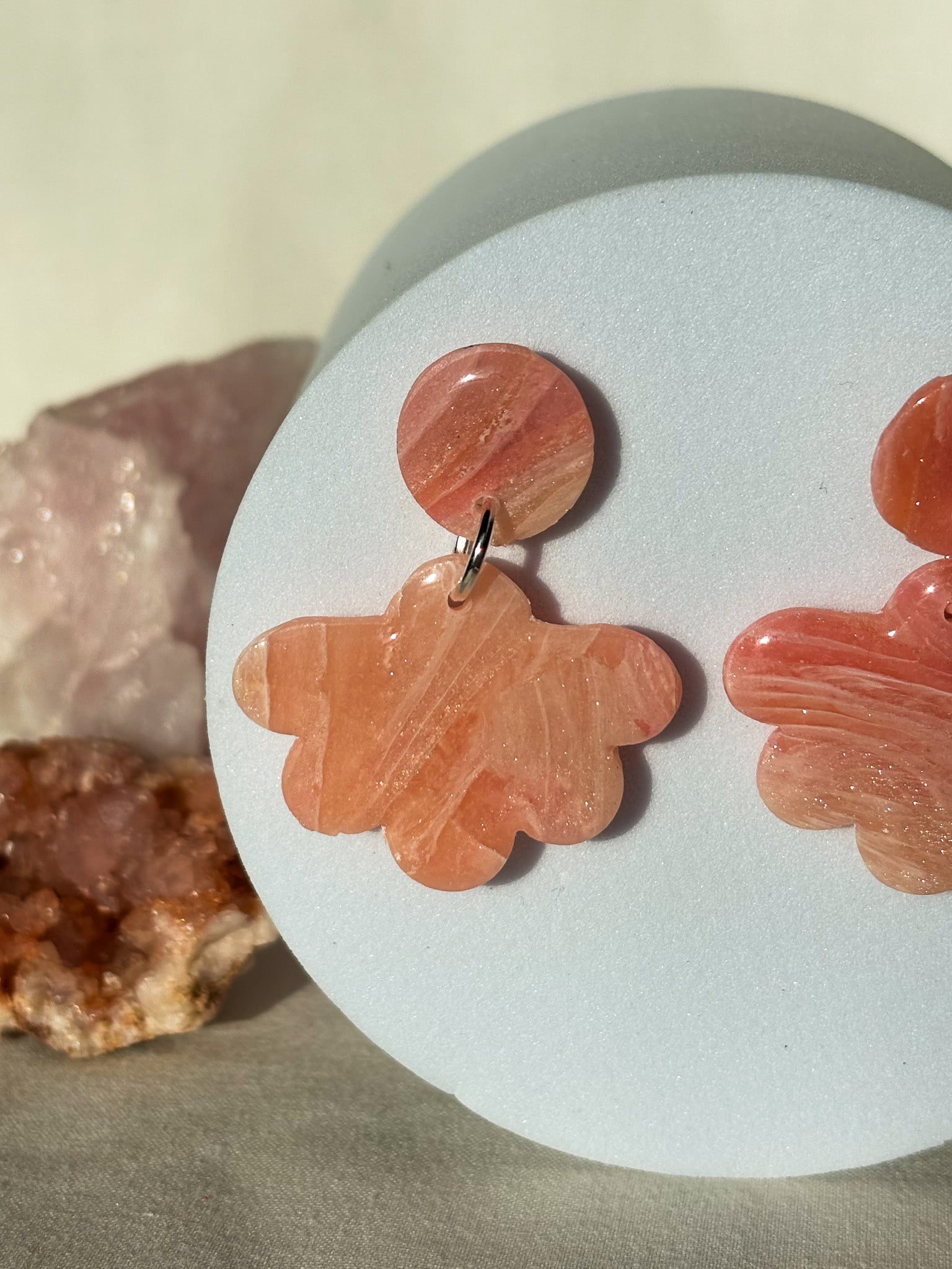Swirled Pink Organic Circle Dangle Stud Earrings