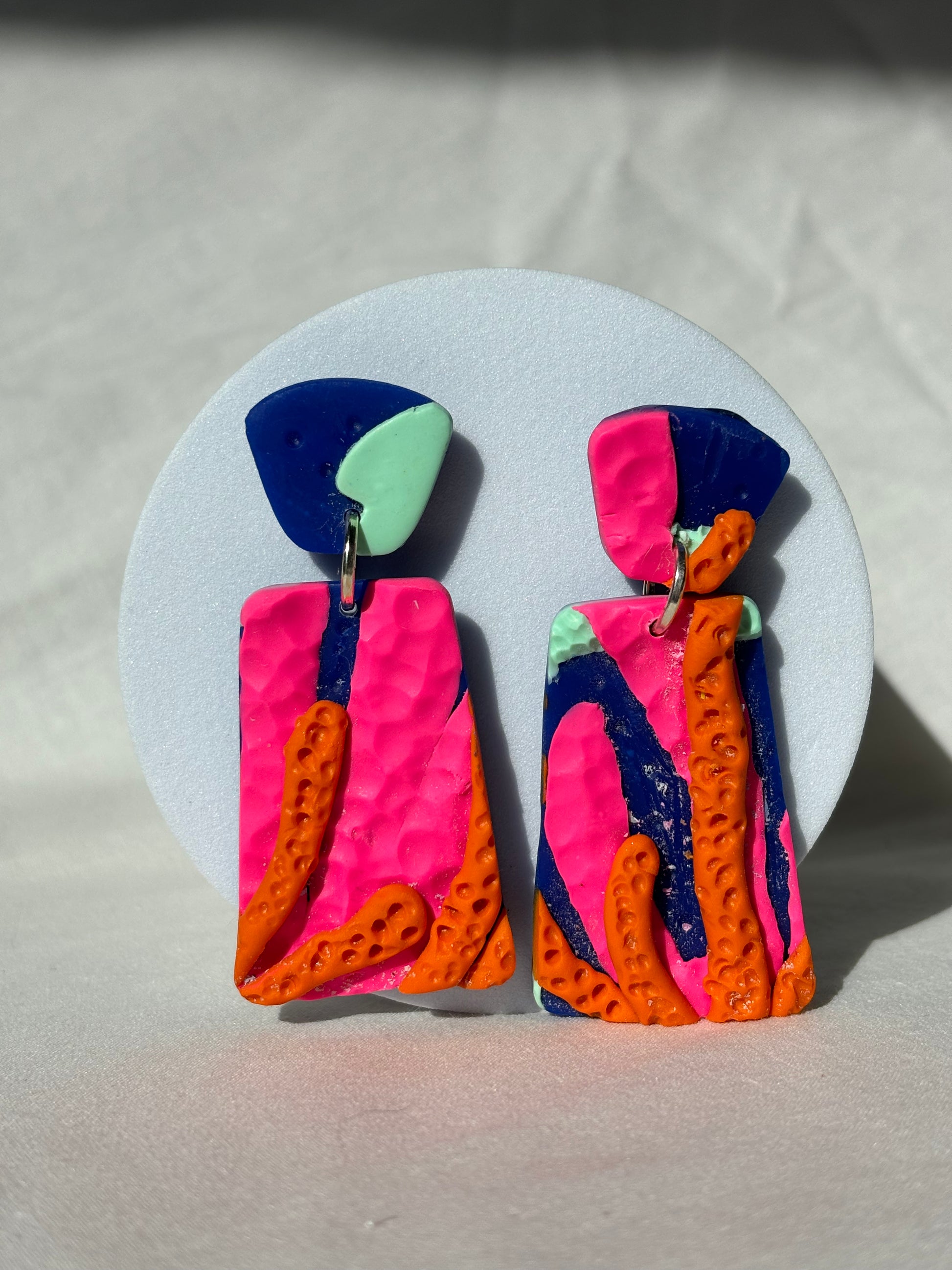 Under The Sea Coral Ocean Polymer Clay Dangle Stud Earrings