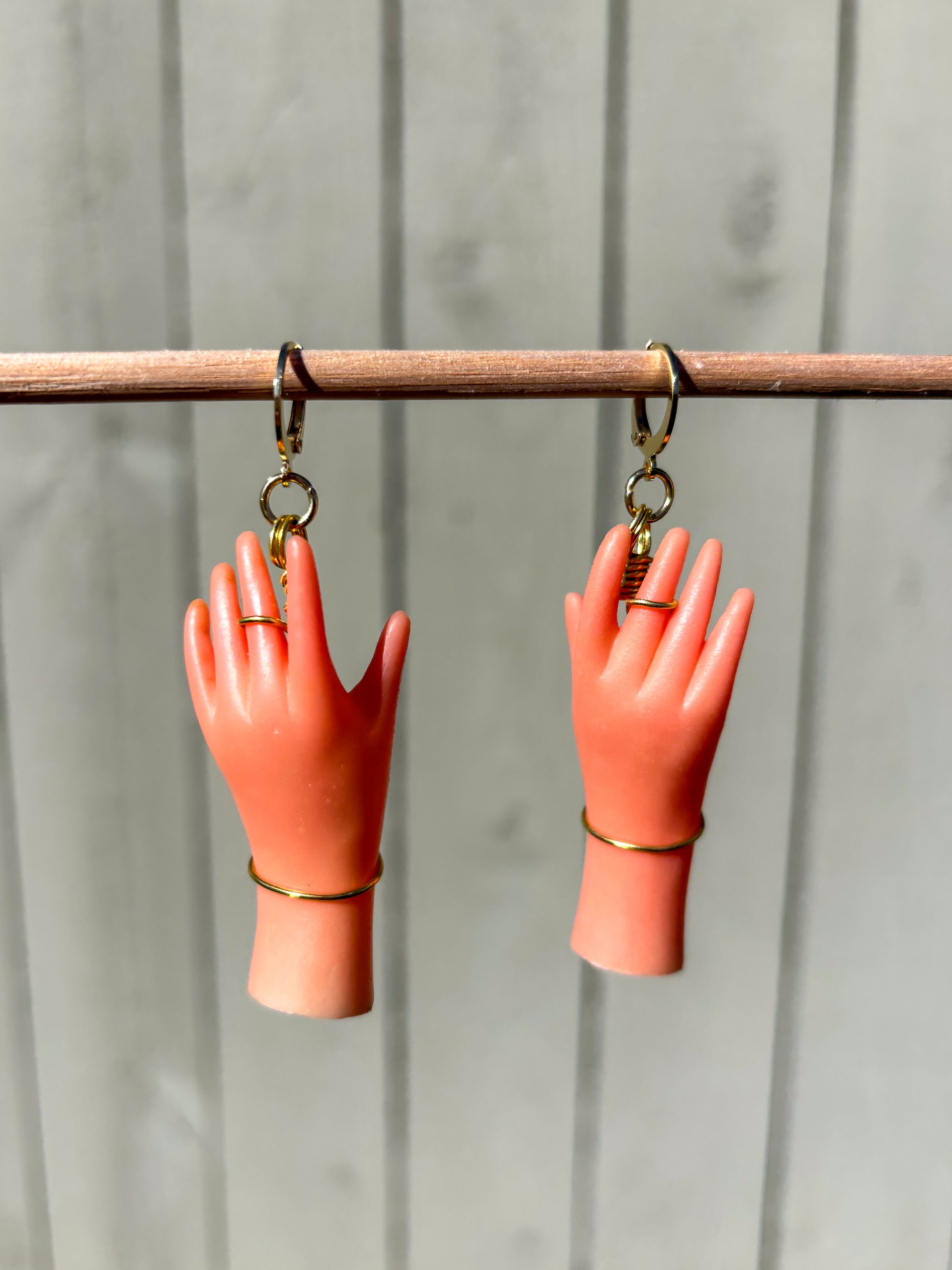 - Charms are wire-wrapped thrifted vintage doll hands made of plastic