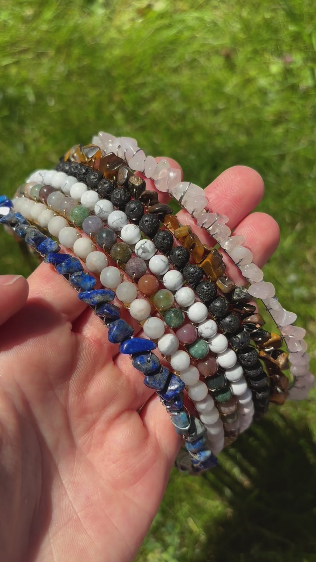 These genuine gemstone headbands. Each headband is made with a sturdy metal base headband, woven with stainless steel wire and natural gemstone beads. Comfortable for casual wear, this is a flexible one size fits most style.